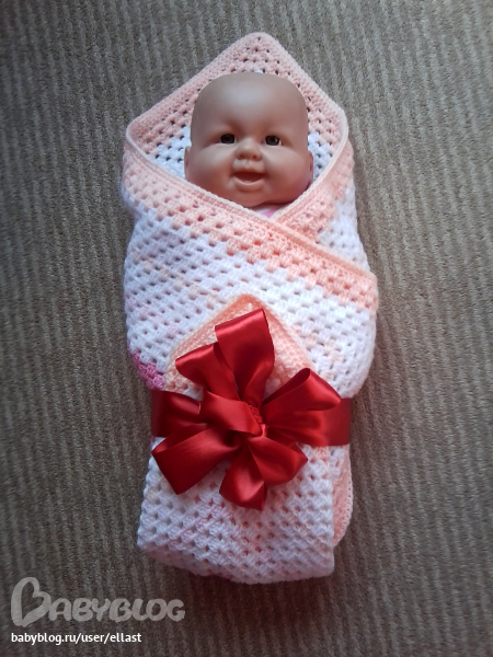 Очень нежно! А с пупсом прям как с выписки, для папашки))) Можно еще ленточку розовую, атласную по краю пропустить, ну если любите такое)