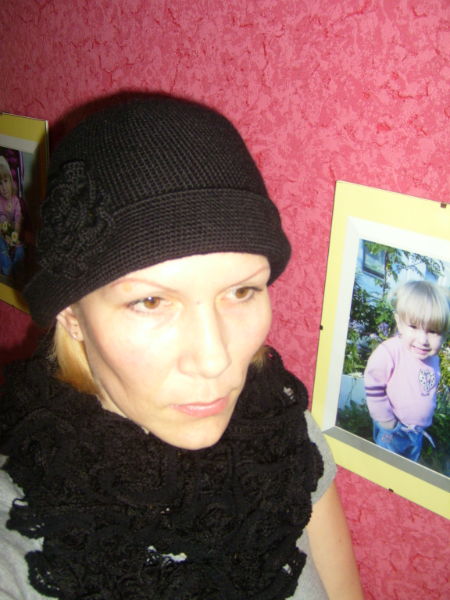 При дневном свете вязать хорошо,но у меня большую часть шляпки получилось вязать только после 9 вечера-ЖУТЬ.Но это того стоило.Я не сколько не жалею,но с черным думаю больше невозьмусь.Хотя желание большое есть черную жилеткусвязать ,но это пока только в мечтах.