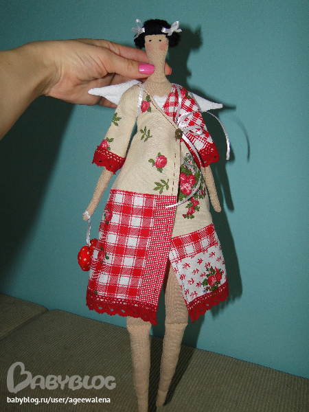 Сразу после первой своей балерины, сшила я еще две куклы. Но уже по другой выкройке. Шила вручную, так как своей машинки нет. Ждала, когда мама свою привезет. Я не очень умею на машинках шить, но халатик сшила.