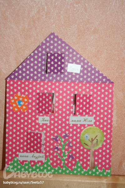 Открытка для Обмена Подарками. В окошках домика спрятались обладатели нашего подарка.