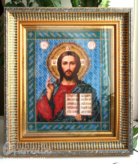 размер самой вышивки 19x24см, а в багете 29x34 получилось. Самая большая икона в моём доме получилась. Не знаю даже, куда бы её разместить.
