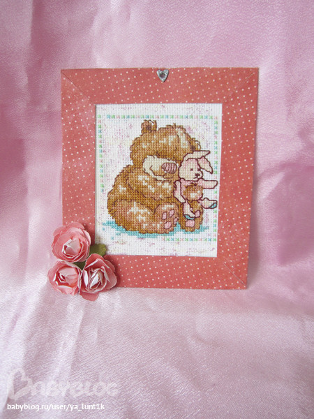 я похожего мишку пыталась вышить..он тоже с зайчиком сидит-только нифига не вышло..лучше не буу показывать своё позорище) А твой просто супер))))