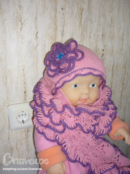 Здорово!!!!!!!!!!Цвет и обвязка,ну очень похожа на мою,я тоже недавно доче комплектик связала,вот фото всё ни как не выложу)))))Красиво!!!!!!!!!!!!