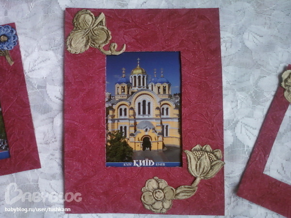 и несколько раздумий - что же туда вставить))) и открытки примеряла, и фотки))))