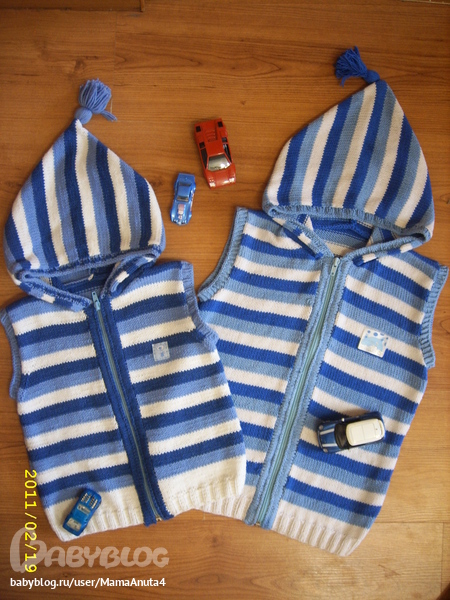 да, я показывала 2 жилетки,связаные сыновьям в разное время, одна полностью руками,вторая немного с помощью машинки, так не угадали, где какая.