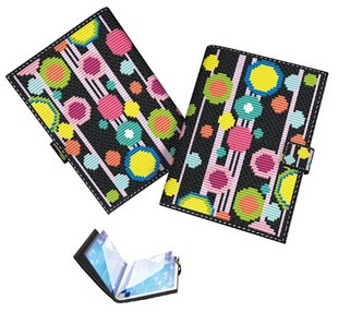 Наборы с визитницами: канва такая же- гибкая и плотная, кнопочки, сама вкладка с отделениями для карточек, нитки, схема вышивания, иглы, схема сборки. Вот: