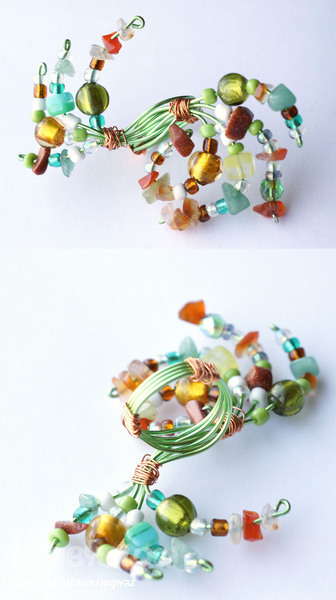 Авантюрин, сердолик и стеклянные бусинки-бисеринки можно изогнуть по-своему и сформировать изящные веточки.