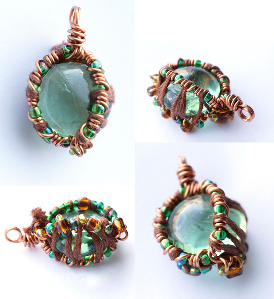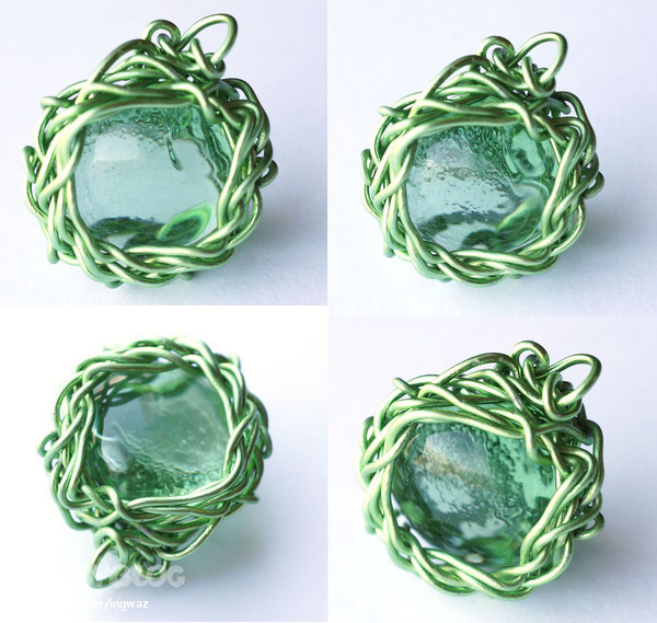 Прозрачное зеленое стеклышко, оплетеное проволокой цвета травы рожает в голове вопоминания о лугах, залитых весенней водой, зрелище завораживающее своей прекрасной чистотой.