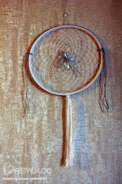 Понадобится основа (например, пяльцы), нитки двуж видов (обмотка основы и собстно паутина) и украшалки разные - на твой вкус.