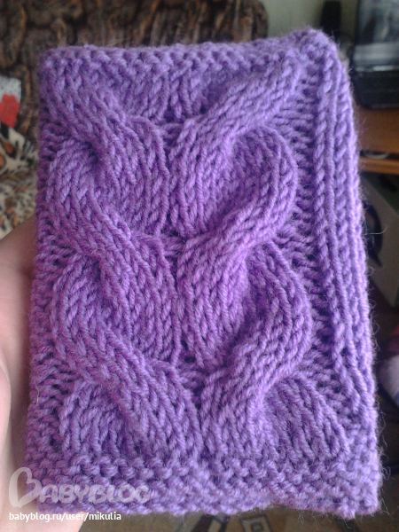 там ничего сложного. выбираете любой узор и вяжете одним полотном по размеру паспорта. я набирала 54 петли. в конце загибаете два края и обвязываете все крючком. если хотите именно этот узор, то я вам напишу как его вязала