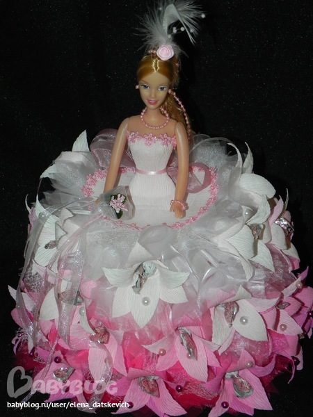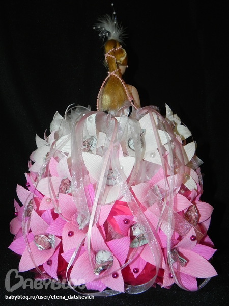 Леночка,подскажите,как вы крепили конфетки,мне заказали куклу,основу сделала\.вроде все хорошо,а вот как крепить конфетки ( под углом или прямо) не могу понять,если можно подскажите. очень хочется выложить свои работы,но интернет мне пока не сдается. как победю )))) все покажу!