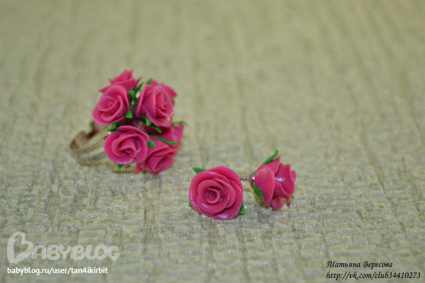 Колечко "Розочки" и серьги-пуссеты :