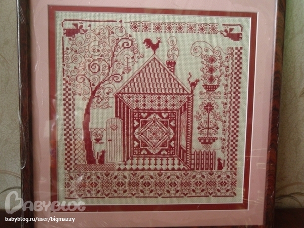размер готовой работы 30*30 см (144 * 141 крестик). Нитки одного цвета красно-коричневый меланж. Канва по-моему № 16 (на глаз), сливочного цвета. Но проще взять набор, стоит недорого, в наборе 2 схемы на хорошей бумаге (крест и бэк отдельно). Я брала в магазине "4 крестика".