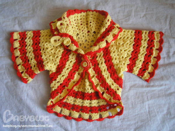 Вязала, разглядывая фотки и по ходу фантазировала под уже связанный сарафанчик, таким образом, получился комплект: сарафанчик и болеро для любимой дочки))) (только юная моя модель не захотела попозировать для истории в обновках)))