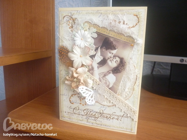 Спасибочки. Винтажная парочка моя первая и самая долгая открытка. Насчет дамы никак не могла подобрать фон, да и глаза слипались. Надо было перенести нв след. День и с новыми силами закончить работу.
