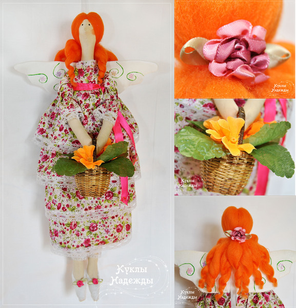 Барышня довольно высокая - 46см. На крылышках петелька, чтоб можно было подвесить.