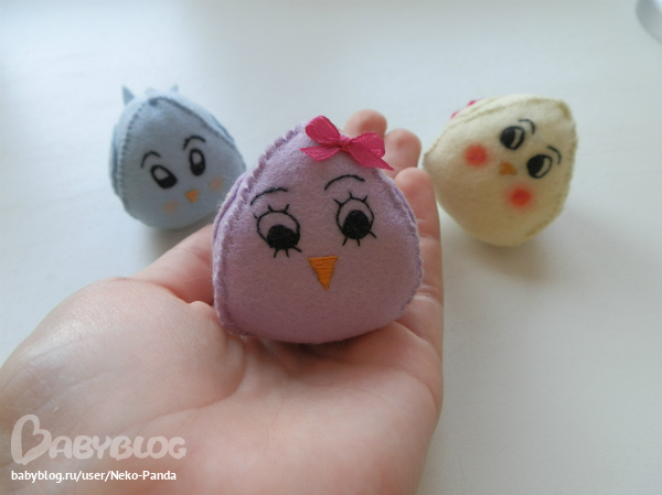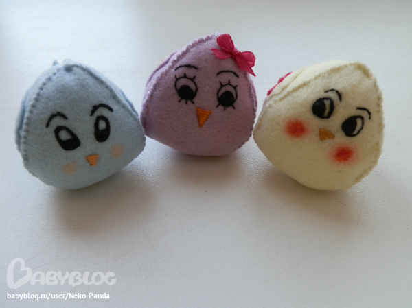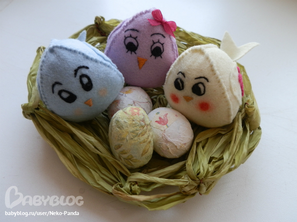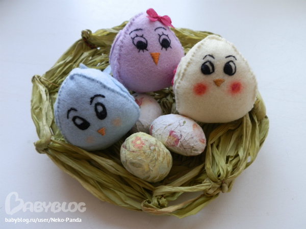 ФетрДавно уже была идея сделать пасхальное гнёздышко и вот наконец-то она воплотилась) пошилась у меня такая милая семейка ципляток в дополнение к уже существующему птенчику. сначала хотела сделать одно большое яйцо, но они слишком миловыглядели и решила никого не обделять, получилось каждому свое)