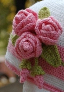 Вот что-то похожее. в середине полосочка мне кажется из столбиков с накидом, свернутая в рулетик, а цветок по этой схеме. И нитки нужны толстые!