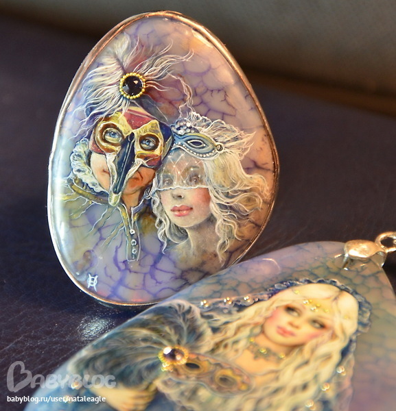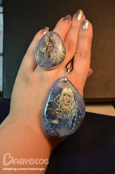 Бижутерия для слингомам. Слингобусы. Грызунки.кулон и кольцо из агата ,с лаковой живописью,