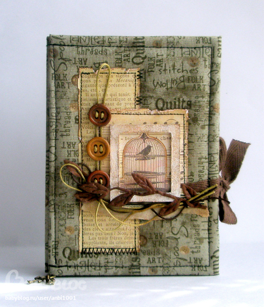 СкрапбукингПривет! Я с новым блокнотом :) Всё как обычно - с нуля, мягкая тканевая обложка (ткань-хлопок), коптский переплёт, 120 тонированых в кофе листов, закладка с подвеской.
