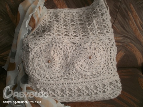 Если вы не спешите с вязкой сумки, то я схожу в магазин, где покупала нитки и потом, скорее всего после выходных, напишу вам точно все.
