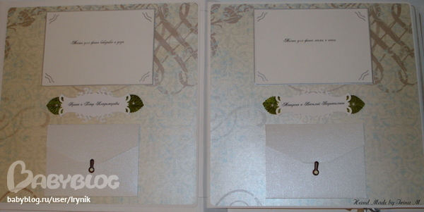 Вместил альбом в себя 38 фотографий размером 10х15см. Есть 2 конвертика для записочек.