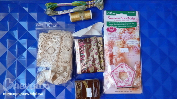 всякие ленты, кружево, нитки, пластик для моделирования (хочу сделать кофейные зёрна) ...