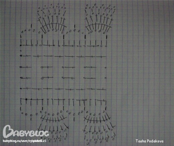 но т.к. ниточка очень тоненькая, то пришлось прибавлений сделать больше, а именно: по схеме вяжем 7 рядов (до 4СС,2 ВП), а затем по тому же принципу еще ряд 5 СС, 2 ВП, следующий ряд *6 СС,2 ВП*- таких рядов 3, после 10 рядов *6СС, 3ВП*...после ряд СБН, след ряд СС2Н(для ленточки), ряд СБН, а после по этой схеме