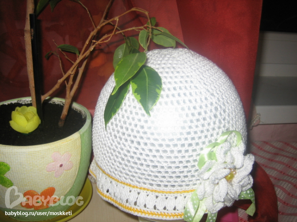 первую шапочку вязала до полей по этой схемке