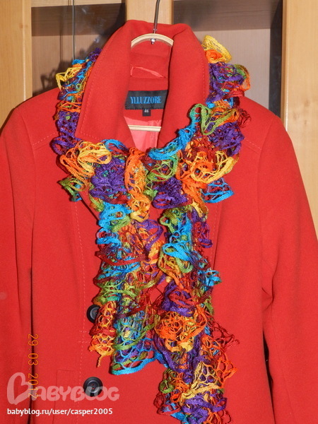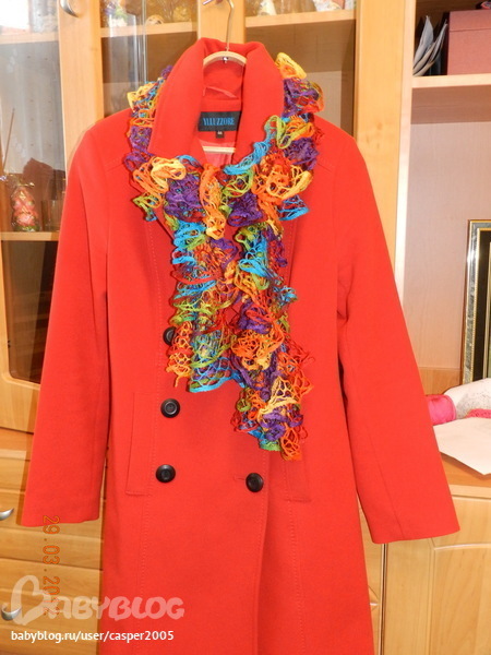 Но, как мне кажется, с красным пальто он теряется.. Думаю, что под него нужно менее яркое пальто, возможно более темное..