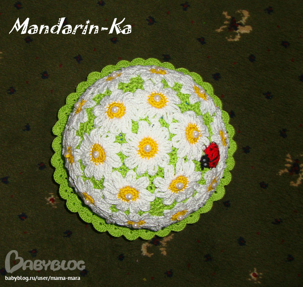 Спасибо, Елена. Нет резиночку не вставляла. Схемки жучка нет, но вяжется легко: вяжем красной ниткой кружок нужного диаметра, затем чёрной ниткой провязываем 7 ст.сн в одну петельку так: 2ст.сн, пико из трёх в.п, ещё 2ст.сн, сново пико из трёх в.п и 2 ст.сн. Точечки вышиваем чёрной ниткой, а лапки образуются при пришивании к шапочке. В конце когда почти уже пришили, набиваем сентипоном для объёма и зашиваем.