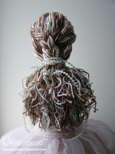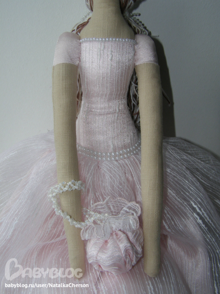 Очень красивая и нежная получилась! восторг. а у меня наоборот (комменты ниже почитала)) кусков мильён шторных (мама со шторами работает). вот только я пока не применяла. только нашила много мешочков разных размеров и расцветок, чтоб игрушку упаковывать)