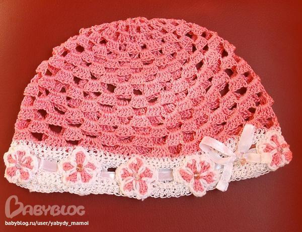 Вот такую летнюю шапочку я связала для своей крестницы, надеюсь ей понравится подарочек =)