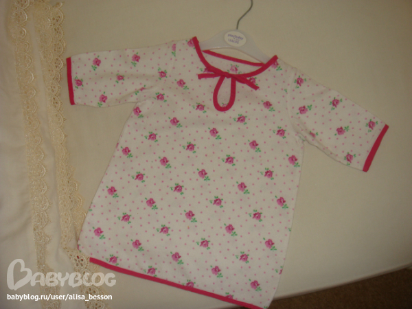 Самым первым шитьем было постельное белье для дочки, потом нарядное платье, постелька для куклы, ночная рубашка Ане, слюнявчики, салфетки на кухню, сейчас шью одежду, скоро соберусь и ее показать)