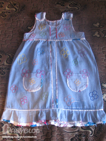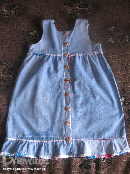 Шитье одежды, выкройки, ремонт одежды, шторы, швейные машины (уже приобретенные)давно обещала показать сарафанчик, который я скроила из своих стареньких, но очень любимых джинс, и вот наконецто дошли руки его сфоткать, зацените)))