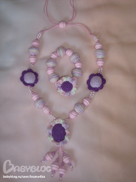 Бижутерия для слингомам. Слингобусы. Грызунки.Детский комплект "Розовый зефир" уже у своей хозяюшки - маленькой девочки Маруси, доченьки