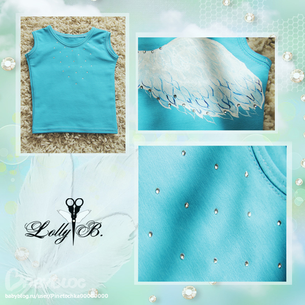 Трикотажик небесного цвета, краски, стразы)))