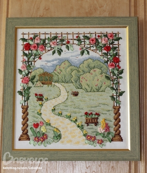 Розы выглядят как настоящие! Насколько же вышивка лентами оживляет картину. Очень красиво!