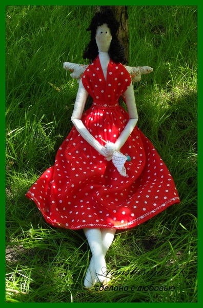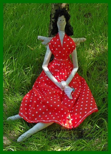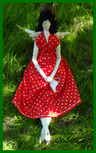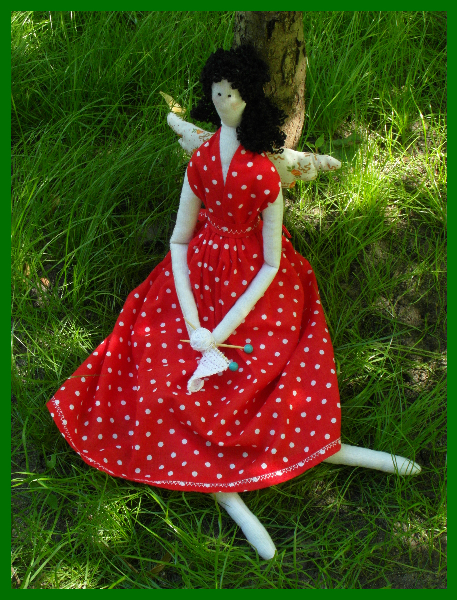 Почему в интернете только Швейные ангелы?Я и подумала, что у каждого дела есть свой ангел-хранитель.И сшила себе Вязального ангела, чтобы он помогал мне в осуществлении моих задумок,легком и быстром вязании.Вязала шила вот по этому мастер-классу:http://lulusha.blogspot.com/2012/02/sewingbird-angel-tilda.html?showComment=1338265597850#c8636402337980189933.А в красное платье в белый горошек я сразу влюбилась.Весь город объездила в поисках подходящей ткани.
