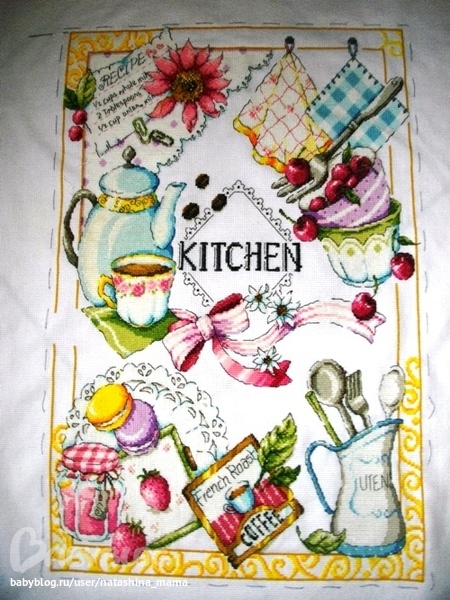 Девочки, уже неделю, как кухня закончена, но осталась маленькая деталь, а Алечка на связь не выходит((( Там внутри салфетки со словом "Кухня" еще завитушки есть, а каким цветом - не знаю... Но все равно покажу))) Красота получилась))))