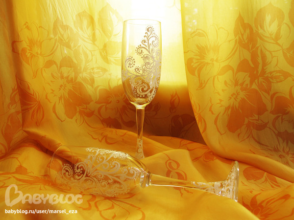 Для меня это просто шидевр !!! очень красиво ) я тоже хочу на годовщину сделать такие -только на бокалах для вина, но не решаюсь попробовать !