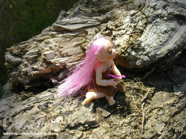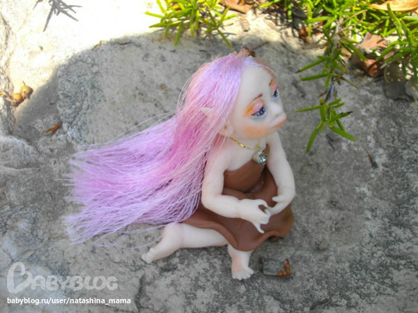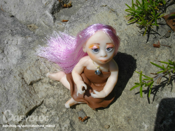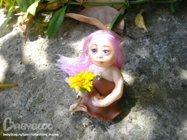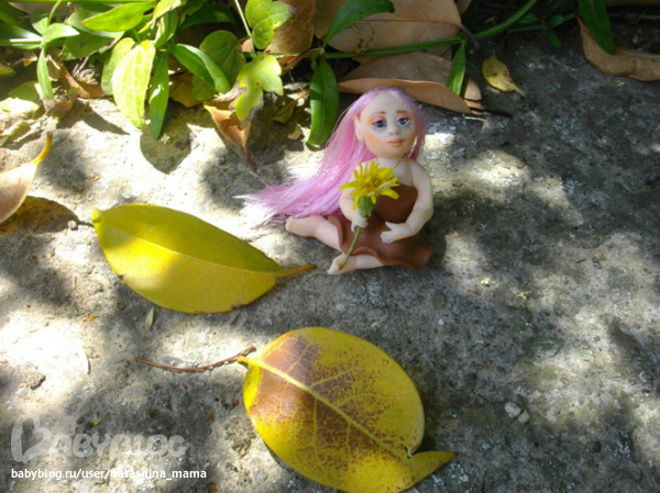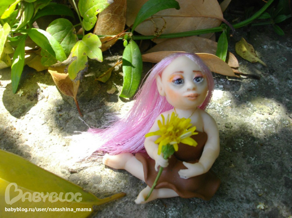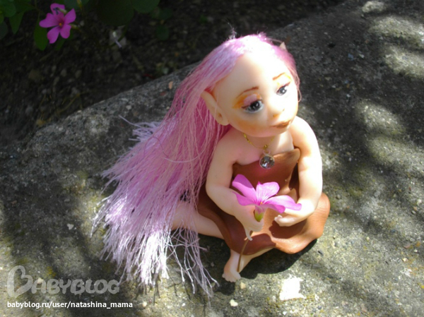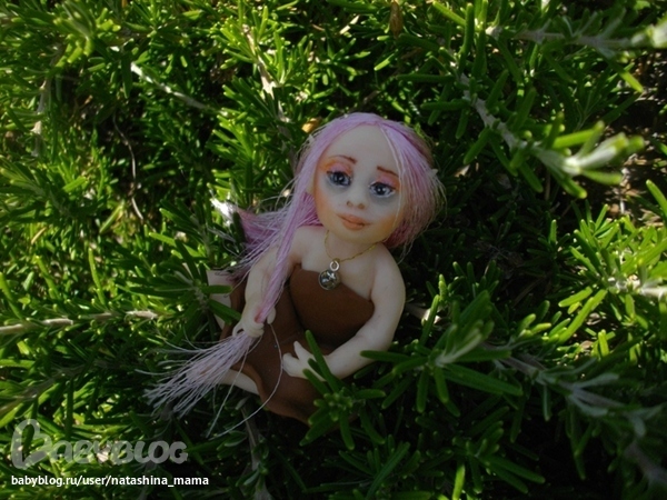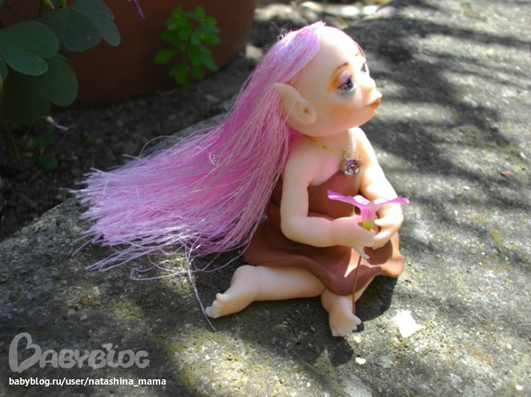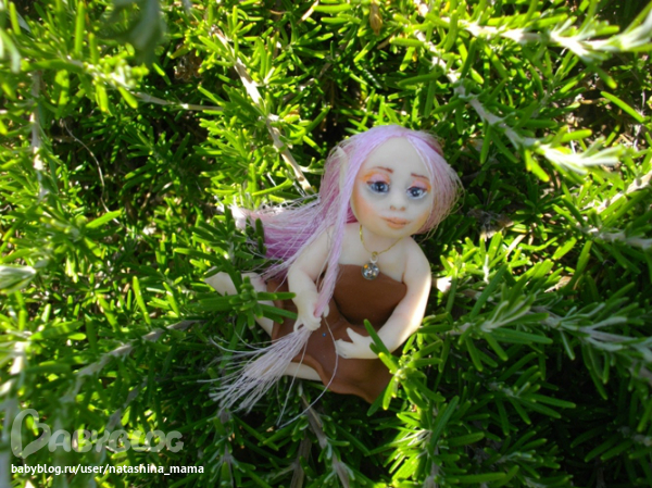 Сегодня утром обнаружила я у себя на террассе вот такое созданье! "Ты кто, чудо?" - спросила я у нее. "Я - Вера..." - тихо ответила мне малышка. На мои просьбы сфотографироваться в домашних условиях, Вера ответила категорическим отказом. Пришлось в такую жару спускаться вниз и фотографировать Веру в саду))) Фотографии мне так понравились, что не удержалась и даже Горошинку сфотала на фоне зелени))) Верочка оказалась просто супер моделью! То прихорашивала свои длинные волосы, то брала в ручки различные цветочки... Наверно, все садовые эльфы такие))) Верочка сообщила мне по секрету, что ищет новый дом с красивым садом или балконом с цветами, который она будет оберегать и приносить удачу. На мой вопрос о цветах на подоконнике ответила утвердительно - там ей тоже нравится! Кому интересна наша садовая фотосессия - милости просим под кат! А также, пока Верочка не слышит, я вам шепотом сообщу, что сделан садовый эльфик из полимерной глины Фимо Соф, волосики - блестящий атлас, а глазки - натуральный черный агат (бусинки), расписанный акрилом и покрытый лаком. На шейке у Верочки золотая ниточка с металлической подвеской и камушком, а ростиком Веруня всего 6 см. Ну, а теперь - фото!
