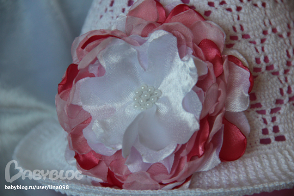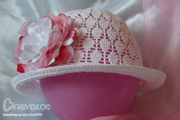Заказали мне связать панамочку беленькую с коралловым нежным цветком...