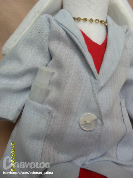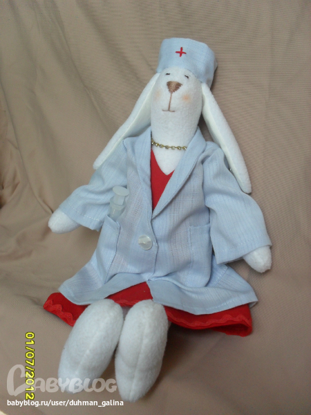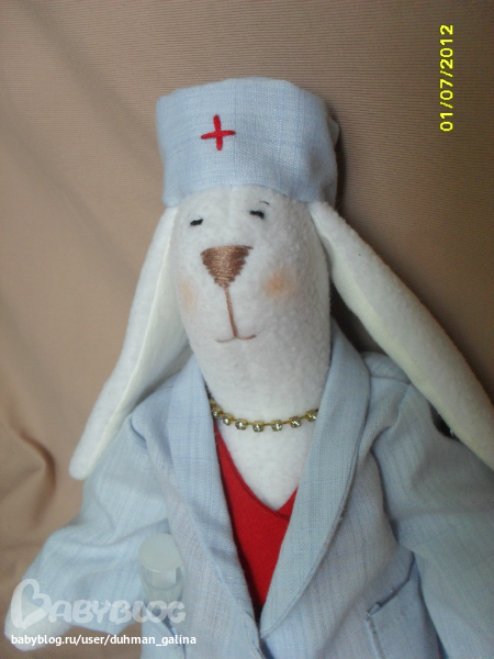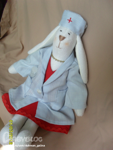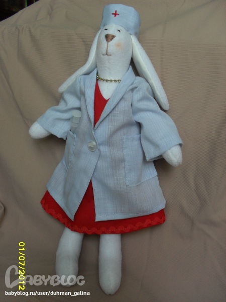Врача шила первый раз, было очень интересно,и поэтому зайка сшилась быстро)))Очень переживала получится ли у меня ,да и вообще всегда волнуюсь когда шью на заказ,это же намного отвественнее))))