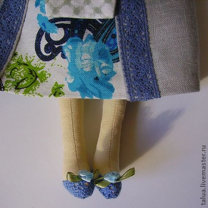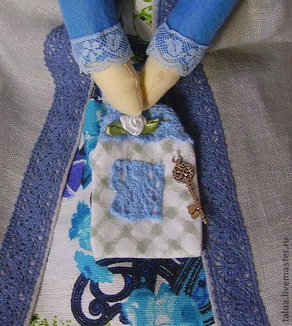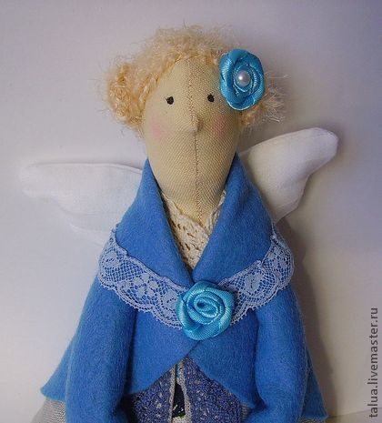 Новую феечку я сшила в серо-голубой гамме, использовала любимый лен, натуральный фетр, хлопковое кружево. Смотрю на нее и становится немного прохладнее в нашу жару.