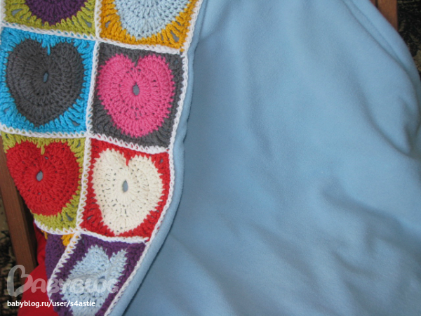 Вот такой двусторонний плед получился, голубой тонкий флис в качестве подклада)))