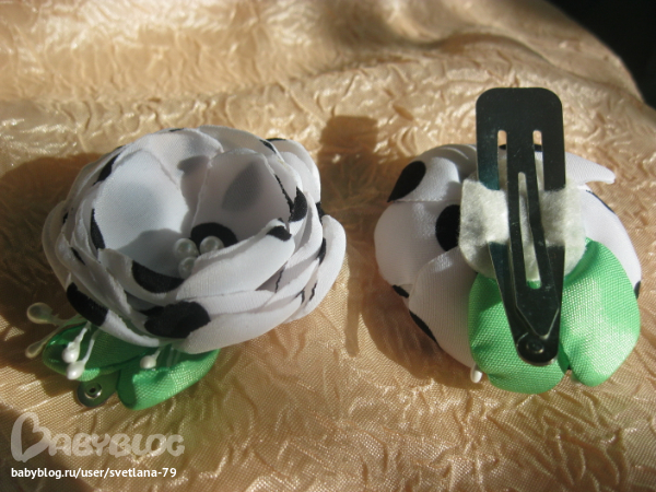 Ой,Светуль,какое крепление?как ты продела заколку?(горошки очаровательны)