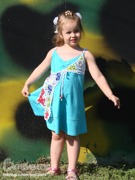 Девочки! Спасибо всем за хорошие слова! Мне очень нравиться давать вещам вторую жизнь,особенно детским,так как боди ребёнок одевает пару раз и всё! А платье можно носить даже пару лет ,если его довязывать. Также и с футболками. Кстати пятнышки можно закрасить акриловыми контурами.