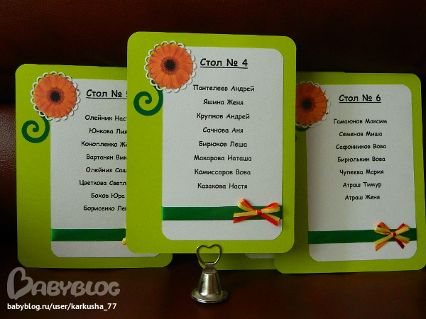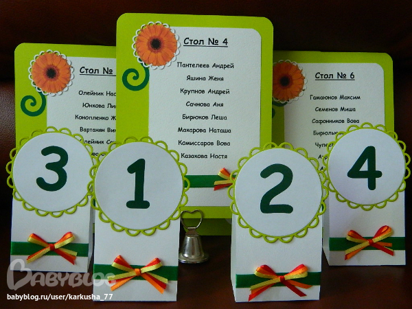 К выходным делала номерки столов и план рассадки для очень яркой свадьбы с необычным сочитанием цветов-красный,оранжевый,жёлтый,салатовый,зелёный...Получилось очень даже весёленько)))Смотрите сами!