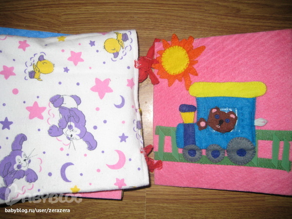 странички - плотные салфетки для уборки.Недостаток в том, что пришивать приходилось не затрагивая обратную сторону, т.к. там тоже сюжет. Поэтому делала все вручную. Если не экономить салфетки ( у меня таких больше не было), то можно одну страничку делать из двух салфеток.